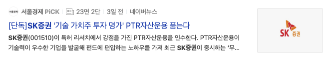 SK증권(001510)의 최근 뉴스동향을 보겠습니다.