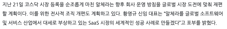 위에 기사를 가져온 이유가 있습니다. 알체라 관련기사와 같이 확인해 보겠습니다.