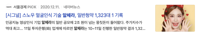 아래 기사는 2020년 12월 23일 기사 입니다. 안면 영상 인식 AI 뜬다? 라는 기사제목을 볼 수 있습니다.