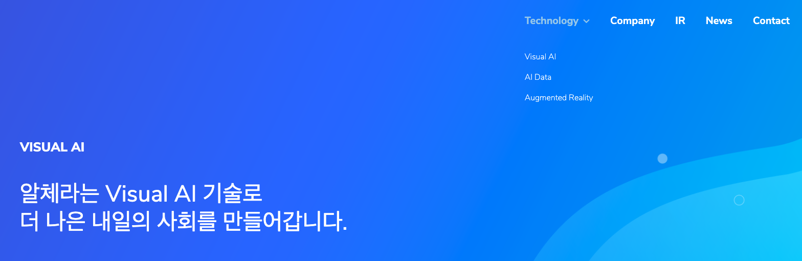 알체라의 홈페이지에서 확인을 하면 Visual AI, AI Data, Augmented reality 를 볼 수 있습니다.