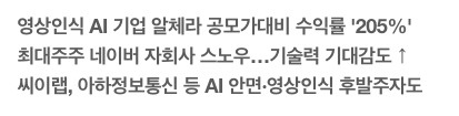 그래서 정리를 하자면 알체라(347860) 소프트웨어및IT서비스 관련종목으로 영상 AI종목으로 앞으로 알체라의 영상AI기술을 어떤 기업이 사용을 하였다는 기사들을 찾아봐야겠습니다.