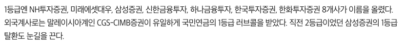 2020년 12월 24일 국민연금 내년 상반기 거래 증권사 61곳 선정이라는 기사 제목을 볼수 있는데 한화투자증권이 1등급이라는 내용을 볼 수 있습니다.