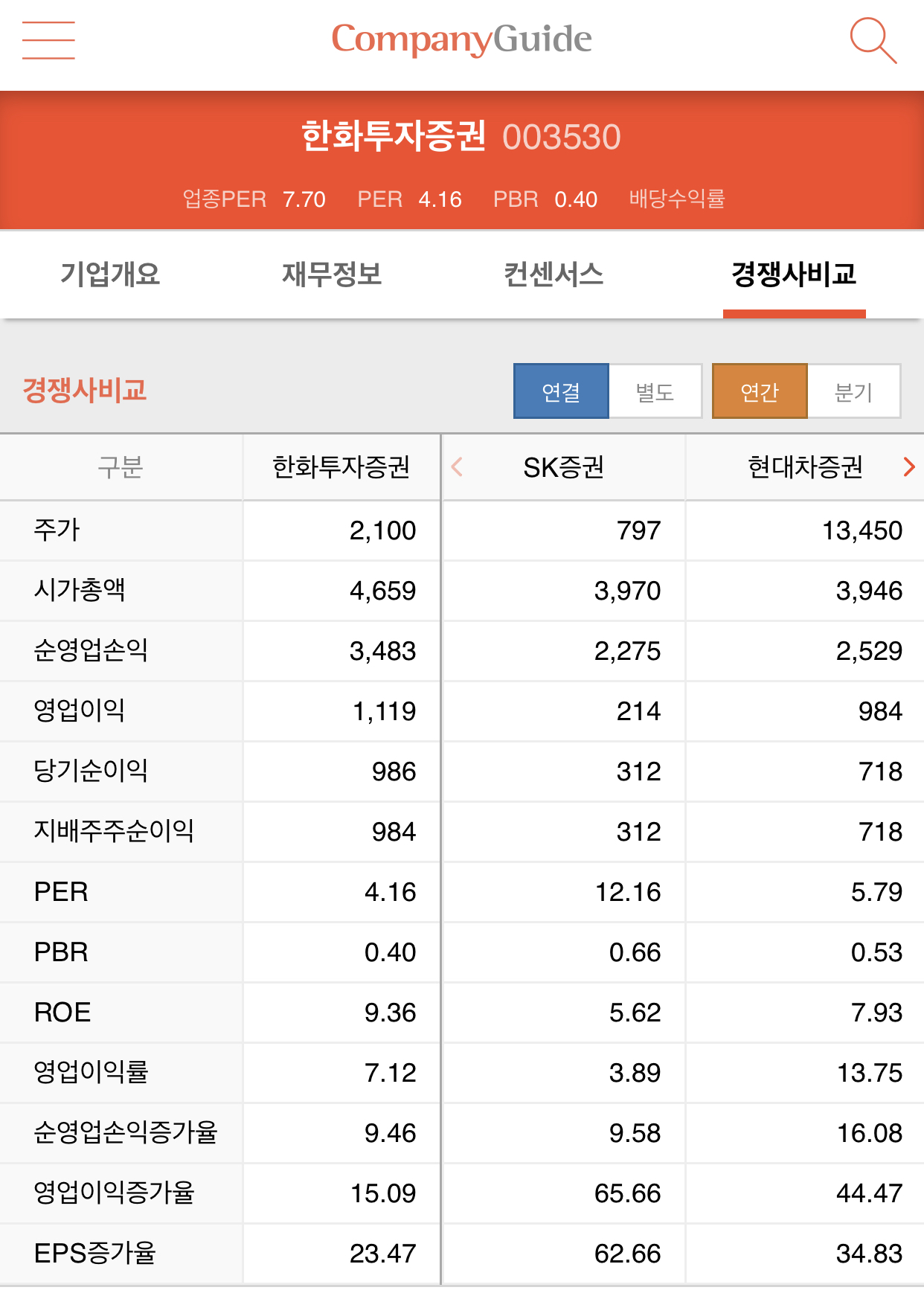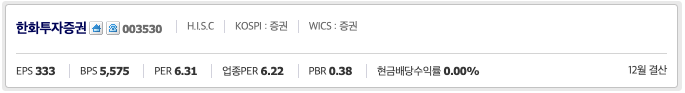 한화투자증권(003450)종목을 알아보는 시간입니다.