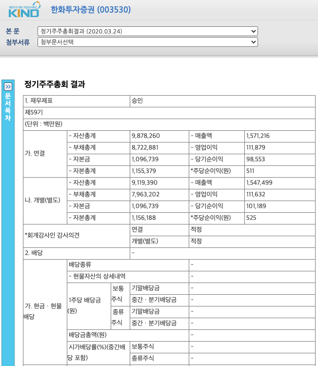 한화투자증권(003450)은 배당을 안했군요