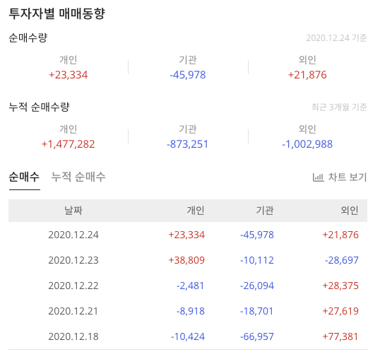 2020/12/26 - [주식노동/종목분석A-Z] - SK증권(001510)종목 정보 코스피종목 SK증권 기본정보 배당 및 대주주 매출구성 그리고 최근 뉴스 및 투자자별 매매동향