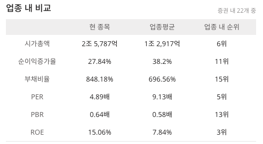 메리츠증권(008560)은 세부산업군 : 증권 기준으로 증권 내 22개 중 시가총액 6위(2조 6,261억)이며 ROE는 3위입니다.