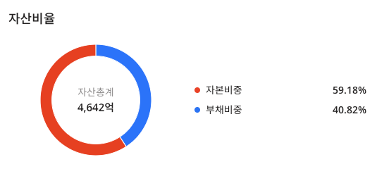 KG ETS(151860)의 자산비율은 자본비중 : 59.18%, 부채비중 : 40.82%로 구성되고 있습니다.