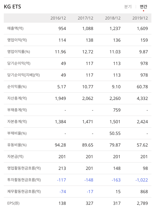 이번 포스팅은 KG ETS(151860)종목 정보를 알아보는 시간입니다. 종목들을 알기 위해서 공부를 하고 있는데 매출액과 영업이익 그리고 순이익이 계속 상승했고 주가도 상승을 했고 투자금이 없기 때문에 공부만 해보겠습니다.