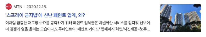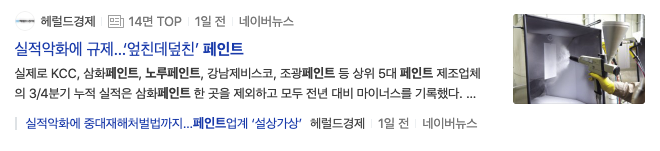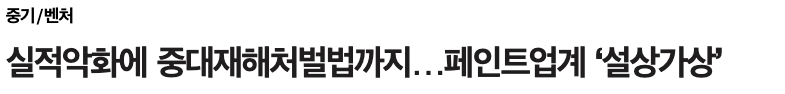 2020년 12월 28일 실적악화에 규제 업친데덮친 페인트 라는 기사제목을 볼 수 있습니다.