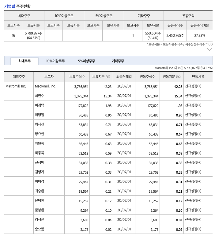 엠브레인(169330)은의 대주주 현황은 아래와 같습니다.