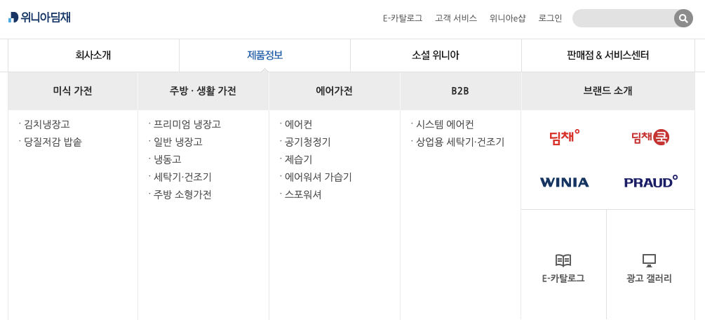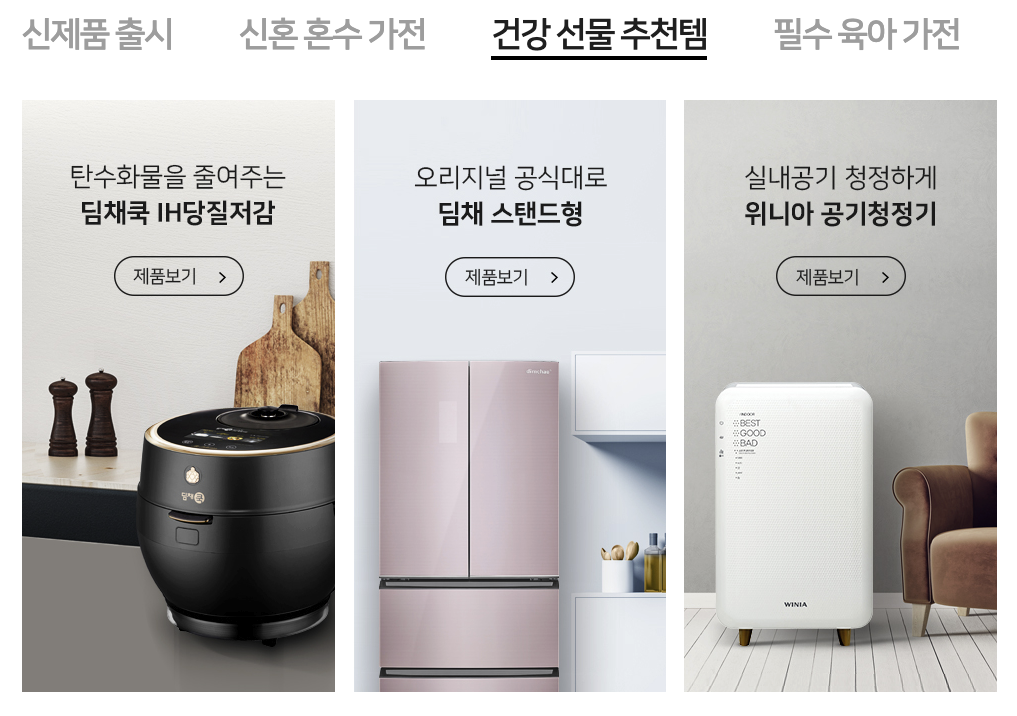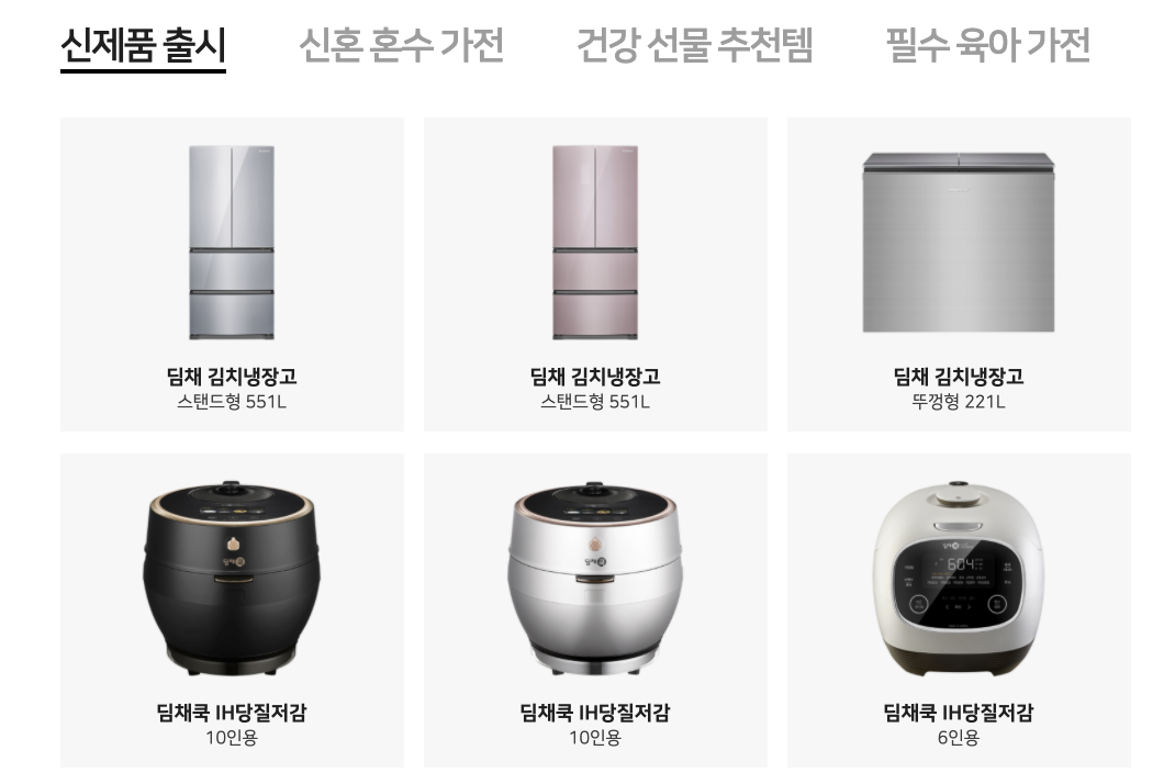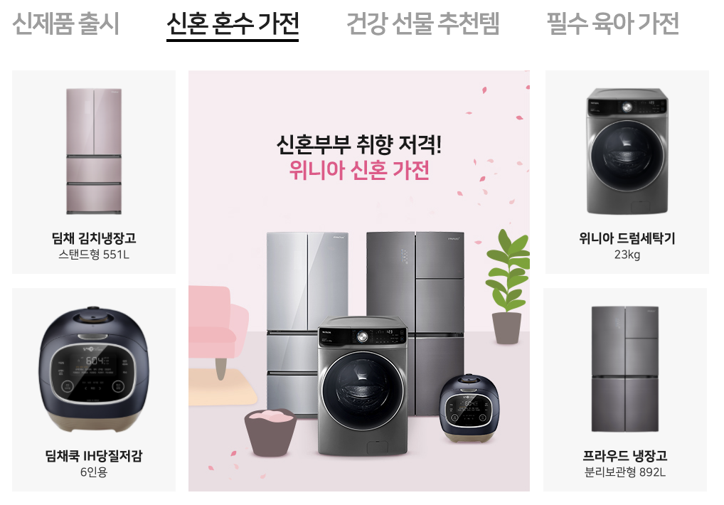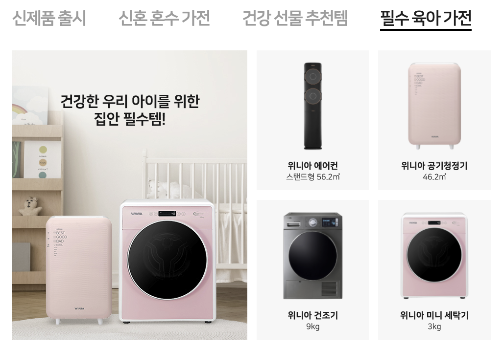 위니아딤채(071460)의 최근 공식홈페이지 마케팅 제품