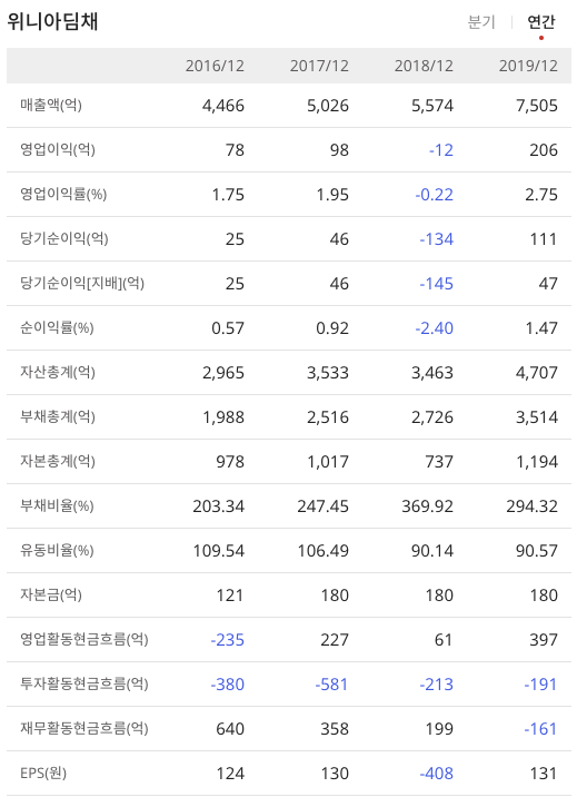 위니아딤채(071460)의 연간 매출액은 상승하고 있습니다.
