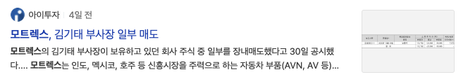 그리고 모트렉스 김기태 부사장 일부 매도를 했다는 기사제목을 볼 수 있습니다.