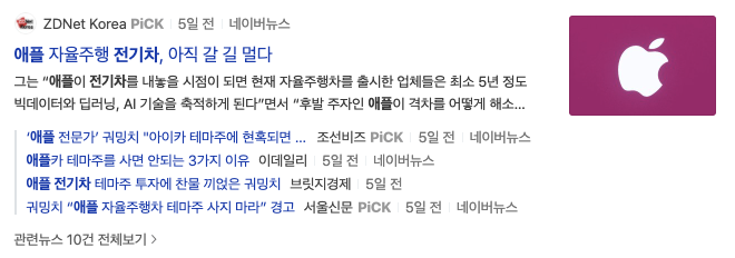 이번 포스팅은 이슈가 되었던 애플 자율주행 전기차 생산 한다는 말이 있고 관련 종목은 크게 올랐습니다.