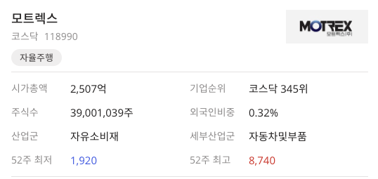 네번째 관련종목은 모트렉스 입니다. 2020년 12월 24일 전기차 승부수 띄운 애플 증권업계 아이카 수혜주 찾기 분주 라는 기사제목과 모트렉스도 인포뱅크와 비슷하게 애플과 구글의 자율주행 인포테인먼트 기술 인증 획득했다는 기사내용을 볼 수 있습니다.