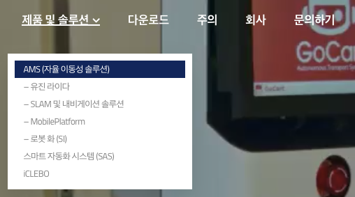 유진로봇(056080)의 제품 및 솔루션은 AMS(자율 이동성 솔류션) (유진 라이다, SLAM 및 내비게이션 솔루션, Mobileplatform, 로봇 화 (SI)),스마트 자동화 시스템 (SAS), ICLEBO 로 구성되어 있습니다.