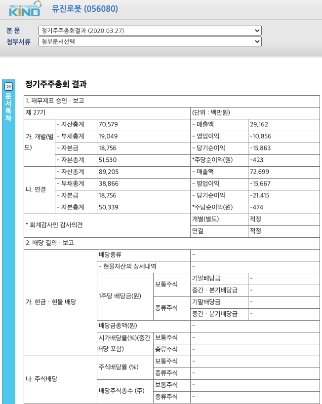 유진로봇(056080)은 배당이 없습니다.