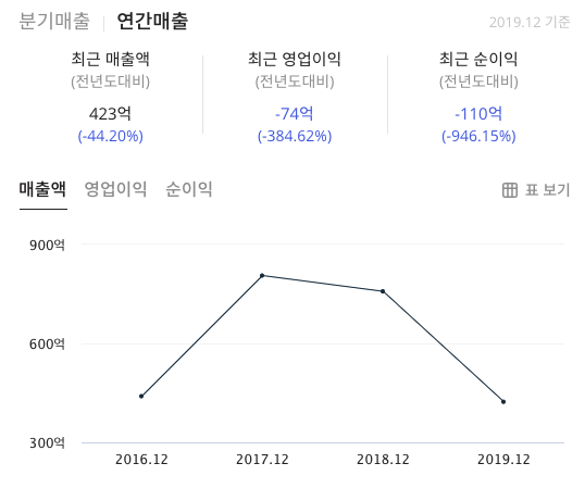 베셀(177350)의 연간매출을 획인을 해보면 매출액은 400억 정도이며 순이익이 적자인상태입니다.