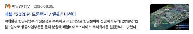 2020년 6월 5일 매일경제TV에서 2025년 드론택시 상용화 나선다 라는 기사제목부터 시작되면서