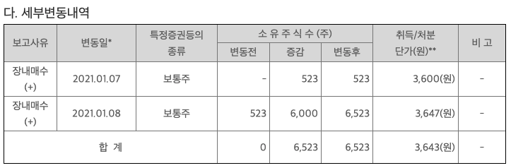 1월 7일과 8일에 장내 매수를 했고 공시도 나왔습니다.