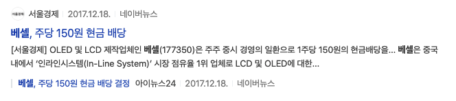 베셀(177350)은 과거 2017년도에는 주당 150원 현금 배당을 했습니다.