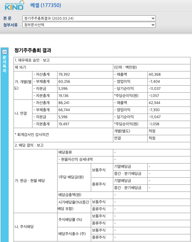 베셀(177350)의 2020년 3월 24일 정기주주총회 결과 공시를 준비했습니다.