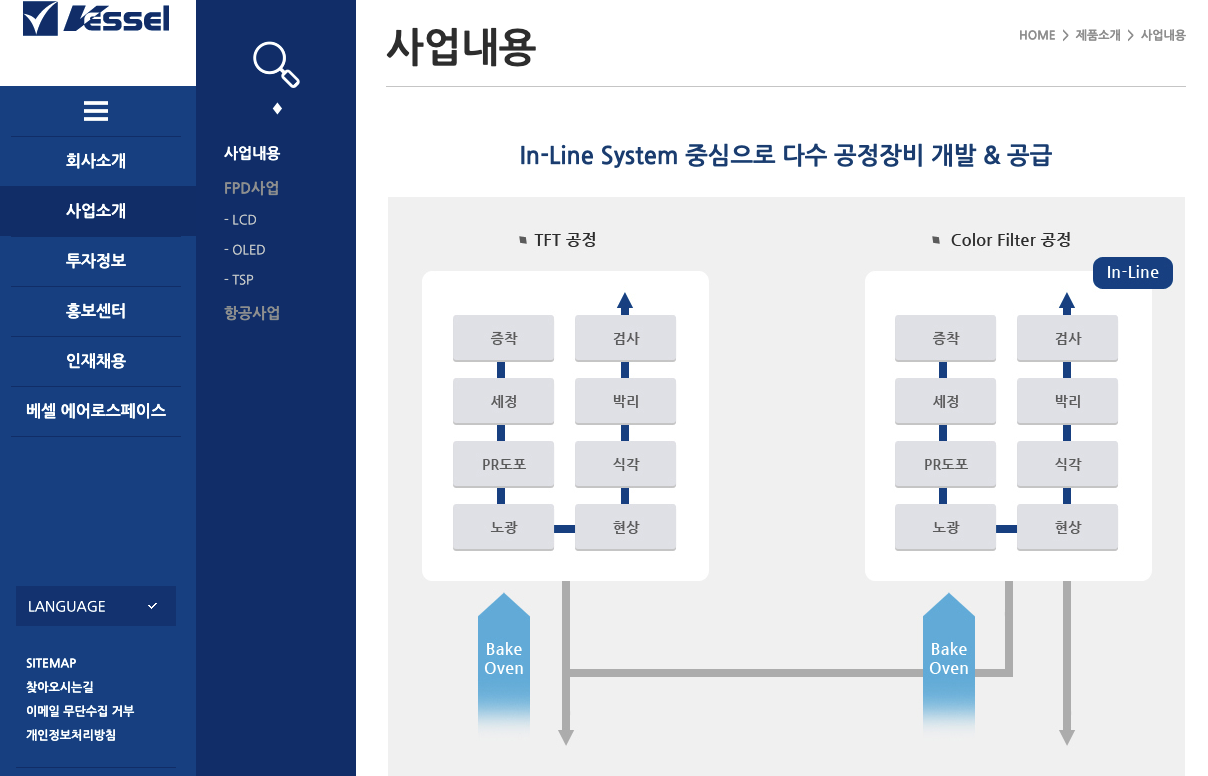 베셀(177350)의 FPD사업군 3가지 LCD, OLED, TSP 준비했습니다.