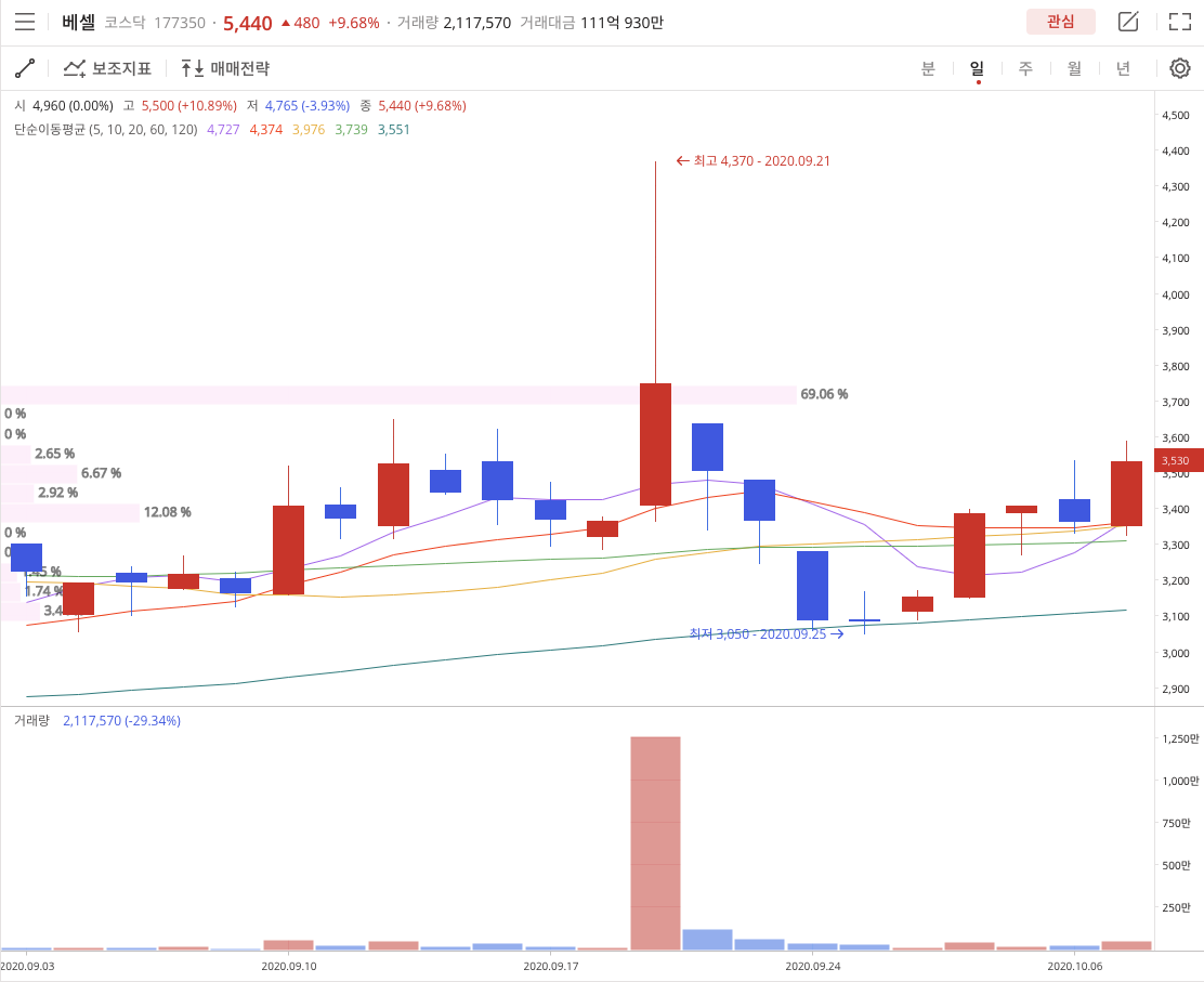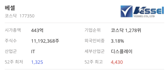 3,500원에서 매집했으면 돈을 벌 수 있었던 종목이였다고 시간이 지난뒤에 생각을 했지만 이미 늦었으니 베셀이 어떤 기업인지 어떻게 분류가 되고 있는지 알아보겠습니다.