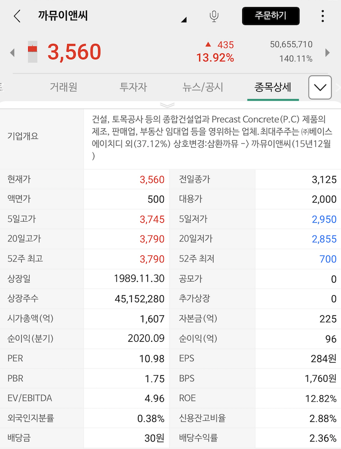 여기까지 준비한 까뮤이앤씨(013700)종목정보 P.C사업종목 PRECASTCONCRETE종목 PC공법 도급건축공사부문종목 건축종목이였습니다. 개인적으로 52주 고점을 시원하게 뚤어줬으면 좋겠습니다 다른종목에서 만나요.