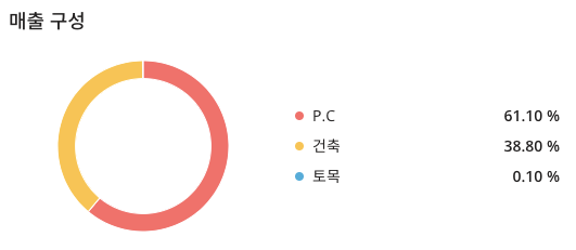 매출 구성은 P.C : 61.10% , 건축 : 38.80% , 토목 : 0.10% 로 구성되어 있습니다.