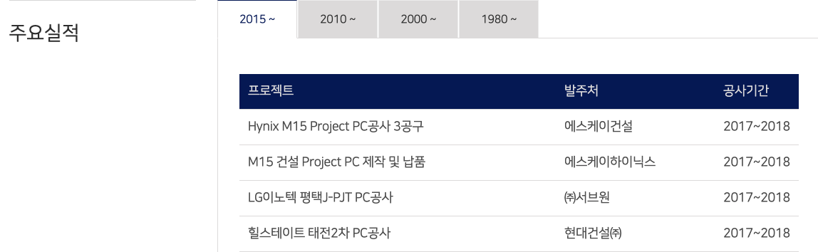 P.C는 PRECAST CONCRETE 사업으로 완전 정비된 공장에서 제조된 콘크리트 또는 콘크리트 제품. 공기의 단축, 공사비의 절감, 품질 관리의 용이, 내구성 증대 등의 장점이 있다고 합니다.