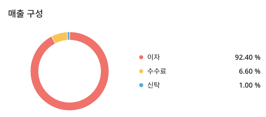 매출구성은 이자 : 92.40%, 수수료 : 6.60%, 신탁 : 1.00%, 으로 구성이 되어 있습니다.
