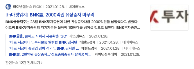 내용을 간단하게 정리를 하지만 BNK의 투자증권은 1997년 설립자본금 50억 소형 선물회사로 출발해 2009년 증권사로 전환후 자본금 1조원을 바라보고 있으며 BNK금융지주는 28일 BNK투자증권에 대한 유상증자대금 2000억을 납입했다는 내용도 있습니다.