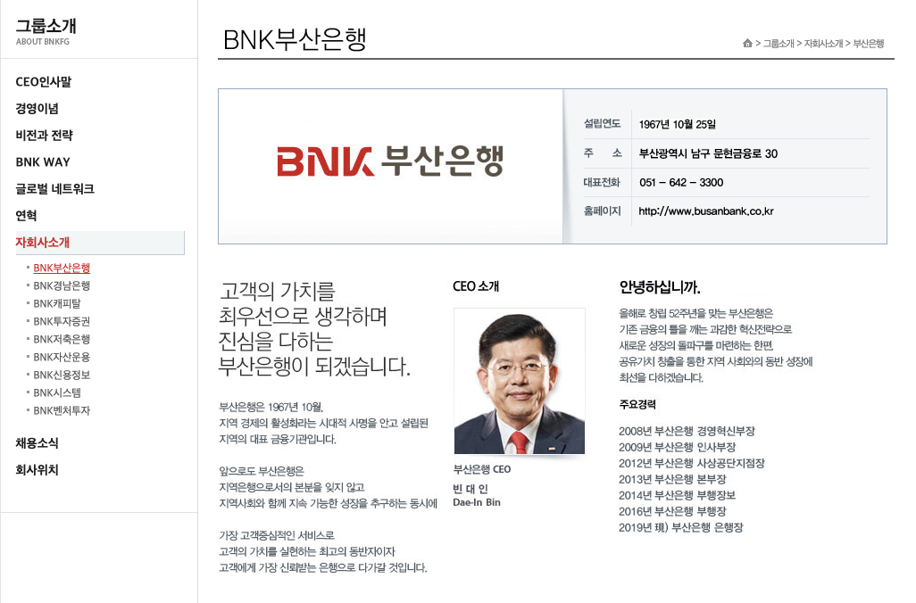 위에서 소개한 내용처럼 홈페이지에 자회사소개가 있으며 자회사는 BNK부산은행, BNK경남은행, BNK캐피탈, BNK투자증권, BNK저축은행, BNK자산운용, BNK신용정보, BNK시스템, BNK벤처투자가 보입니다.