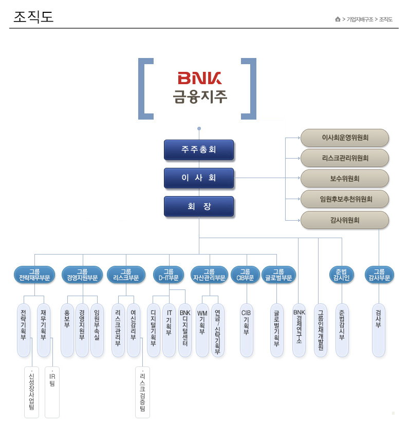 BNK금융지주(138930)의 조직도는 아래와 같습니다.