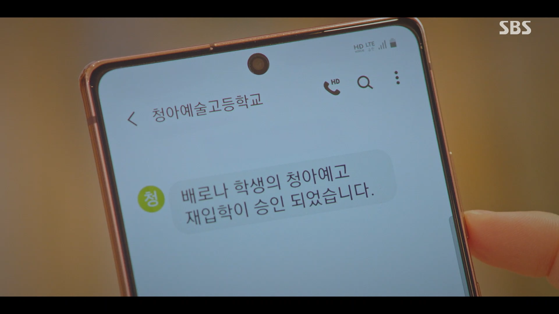 그리고 로나 핸드폰에 청아예술고등학교에서 배로나 학생의 청아예고 재입학이 승인 되었습니다 라는 문자메시지를 받았습니다.