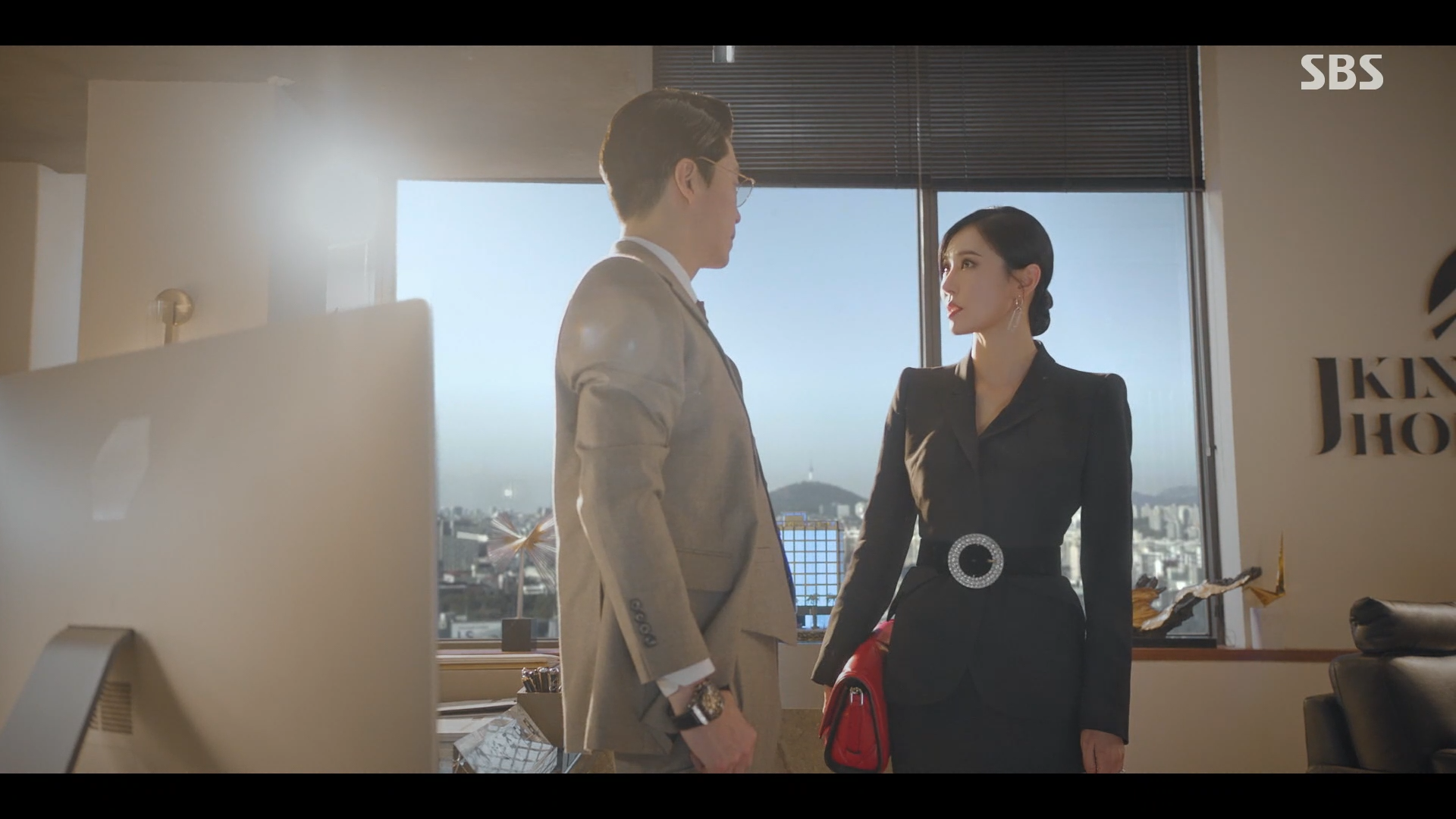 천서진은 조비서는 나가보라고 말하고 주단태에게 "내가 아니라면 그게 뭐든 무조건 믿어줘야 하는거 아니야? 내 손해서 해결해! 내가 해결한다잖아! 제대로 해명도 들어보지 않고 무작정 화내고 몰아세운거 불쾌하네 학교 들어가봐야해" 라고 말하고 자리를 떠납니다.