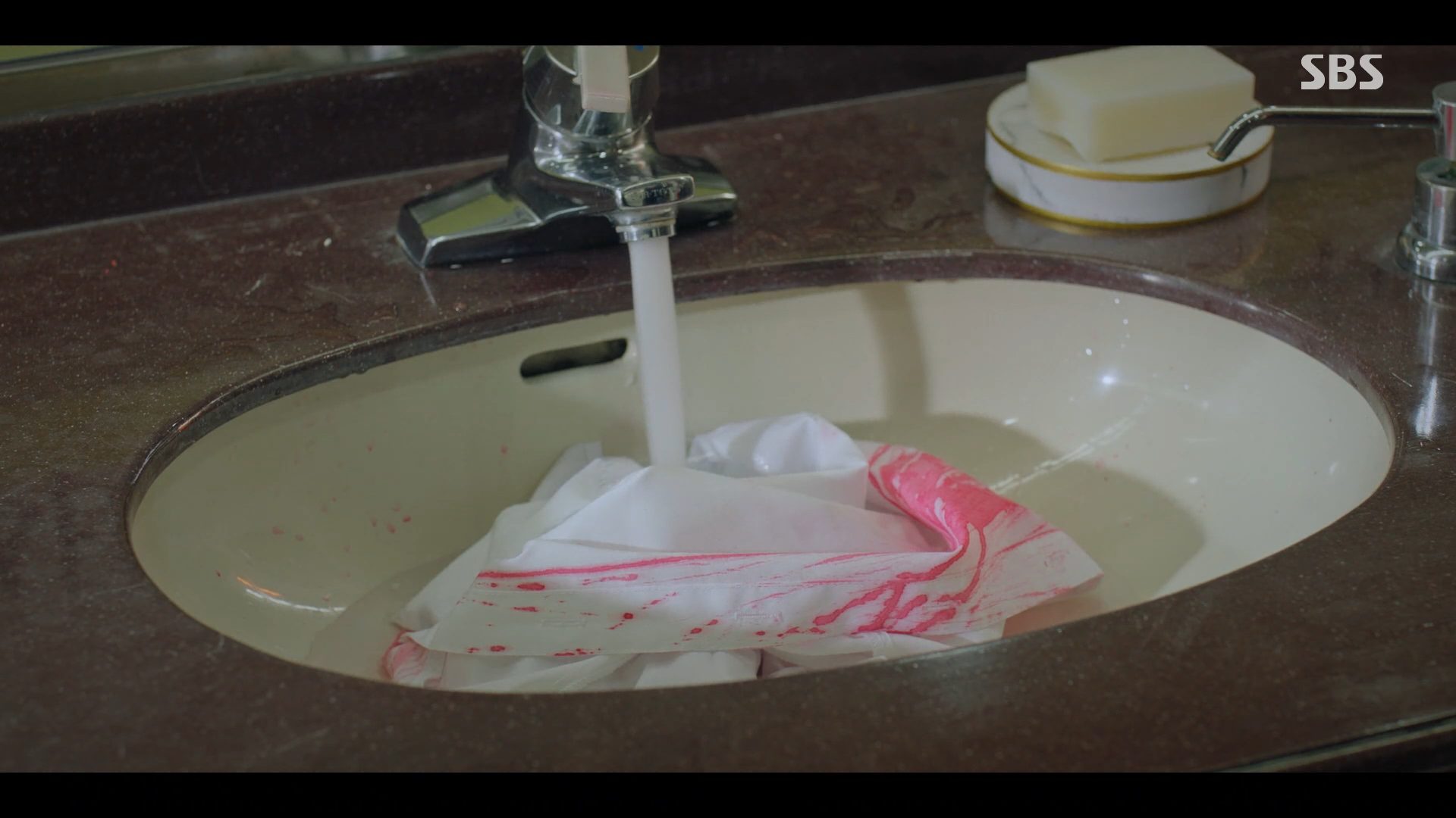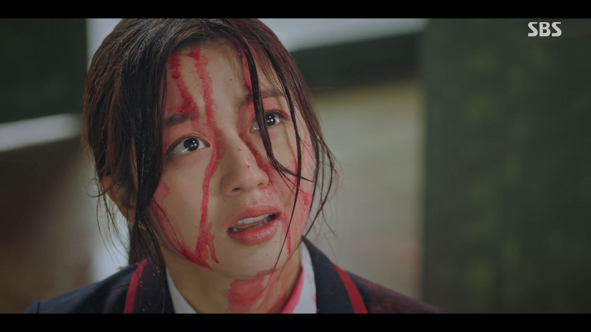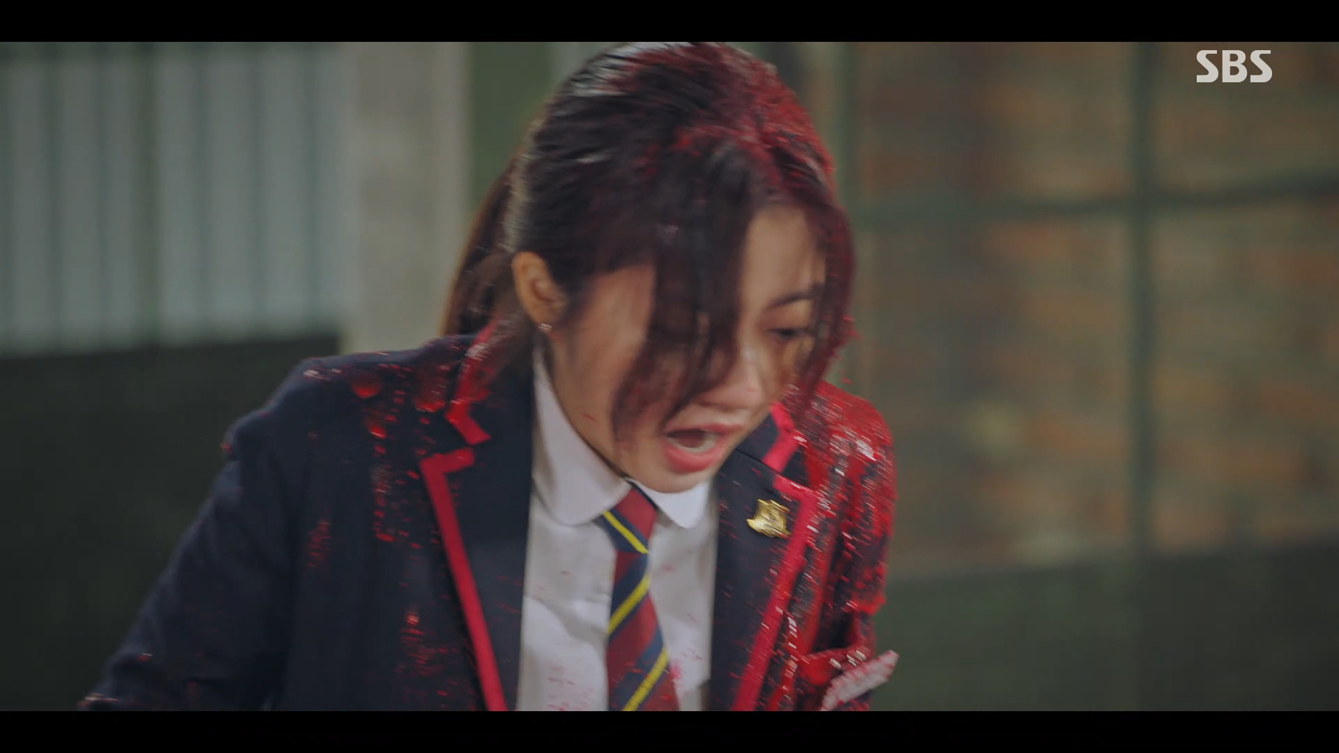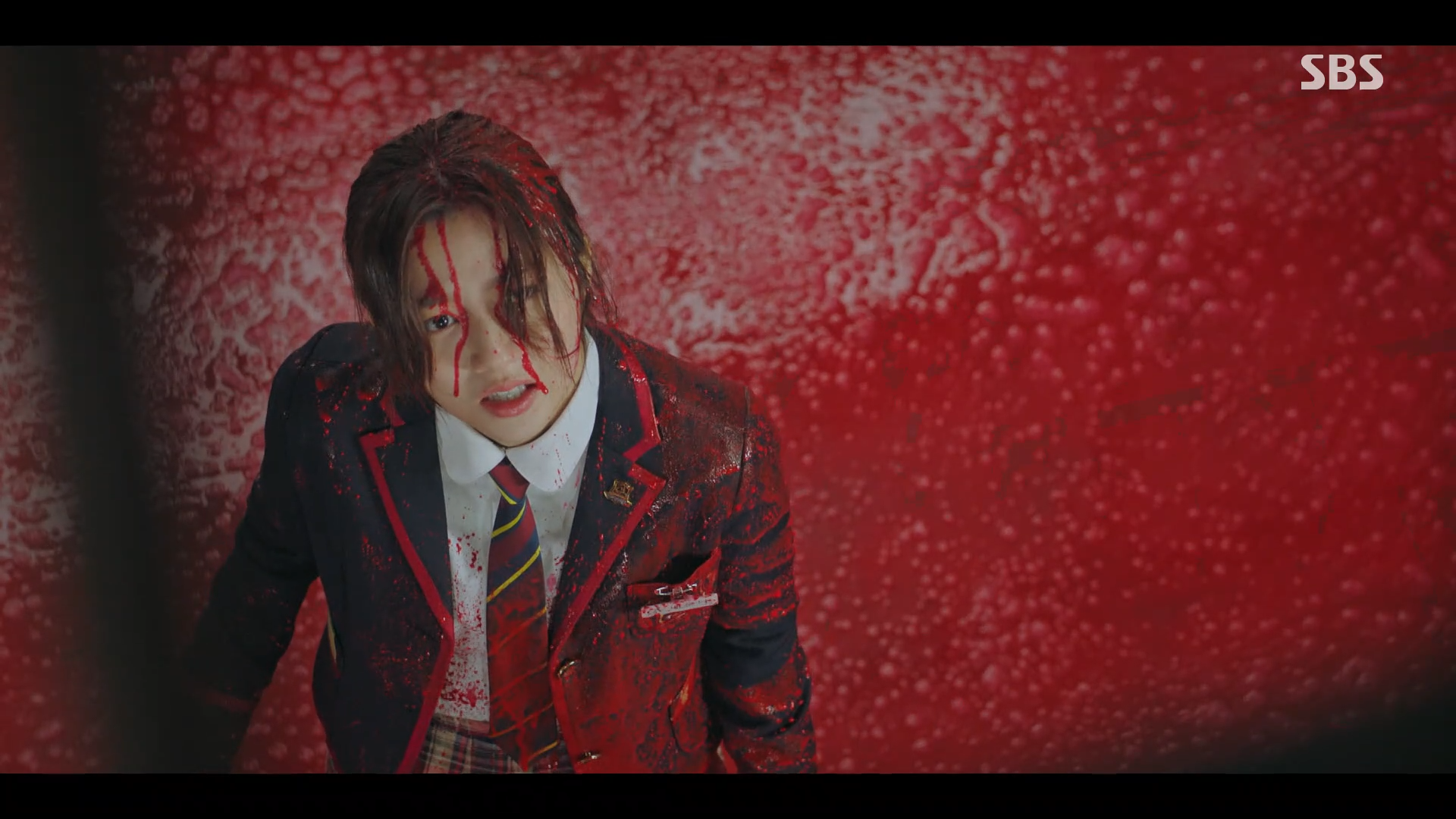 배로나는 무슨짓이냐고 말하는데 석경이는 역시 살인자 딸 답게 빨간색이 잘 어울려 라고 말합니다.