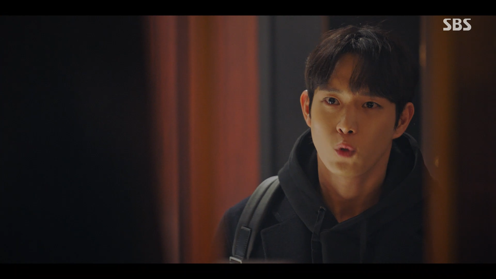 천서진은 주단태가 드레스룸쪽으로 보지 않도록 유도합니다. 그 모습을 보고 있는 하윤철입니다.