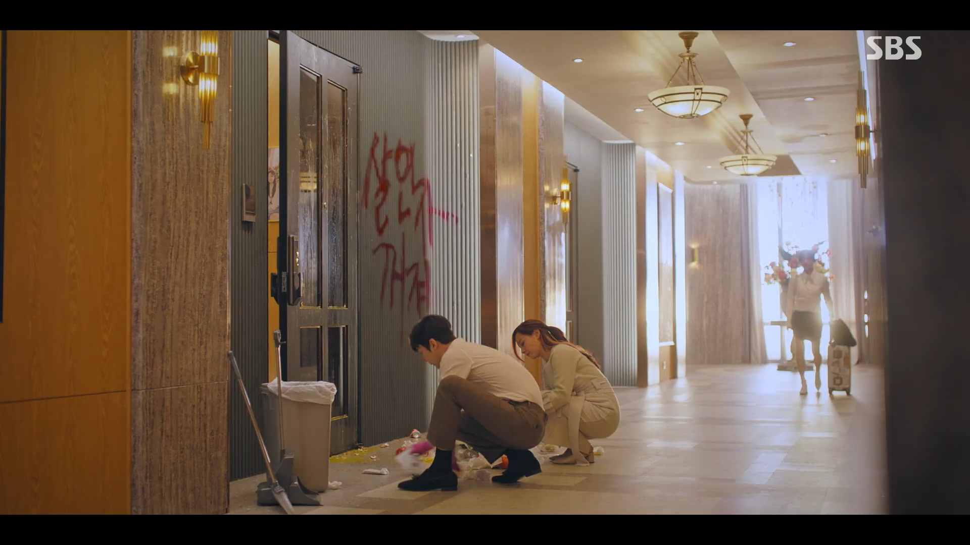 그러자 주단태는 조비서를 불러서 누군지 물어보지만 명확하지 않아서 모르겠다고 조비서는 답하고 주단태는 호텔측은 하고 물어보니 개인정보기 때문에 제공을 못하겠다는 조비서는 답을 하니 화가나서 조비서를 폭행합니다.