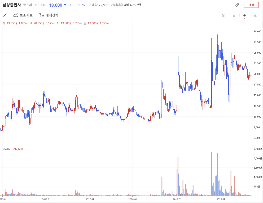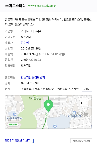 스마트스터디는 현재 상장이 안되어 있기 때문에 스마트스터디의 지분을 가지고 있는 상장된 회사인 삼성출판사를 소개하려고 합니다. 삼성출판사와 스마트스터디는의 기업이 시너지 효과를 기대하고 있습니다.