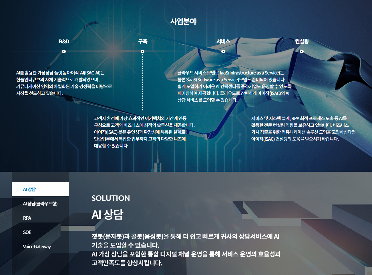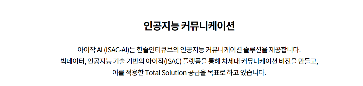 아이작 AI (ISAC-AI)는 한솔인티큐브의 인공지능 커뮤니케이션 솔루션을 제공합니다.