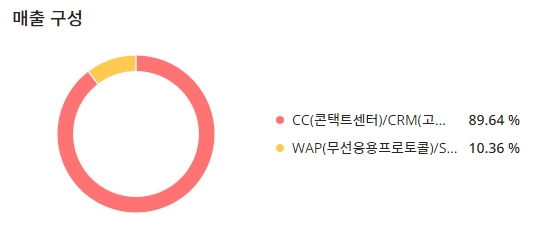 매출구성은 CC(콘택트센터)/CRM(고객관계관리) : 89.64%, WAP(무선응용프로토콜)/SMS,MMS(메시지서비스) : 10.36% 입니다.
