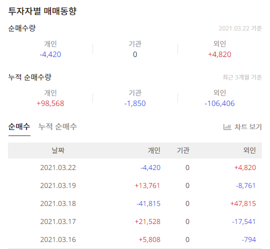 한솔인티큐브(070590)의 최근 3개월 기준 투자자별 매매동향은 개인이 매수를 했으며 기관과 외국인은 매도를 했습니다.