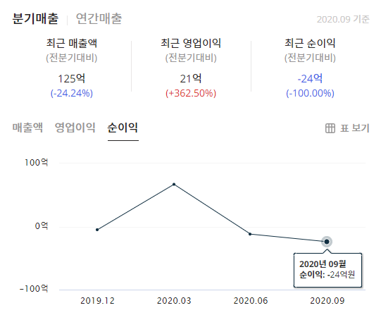 위에서 언급했던것처럼 매출액과 영업손실 부분을 확인 할 수 있도록 아래 재무정보를 가져왔습니다.