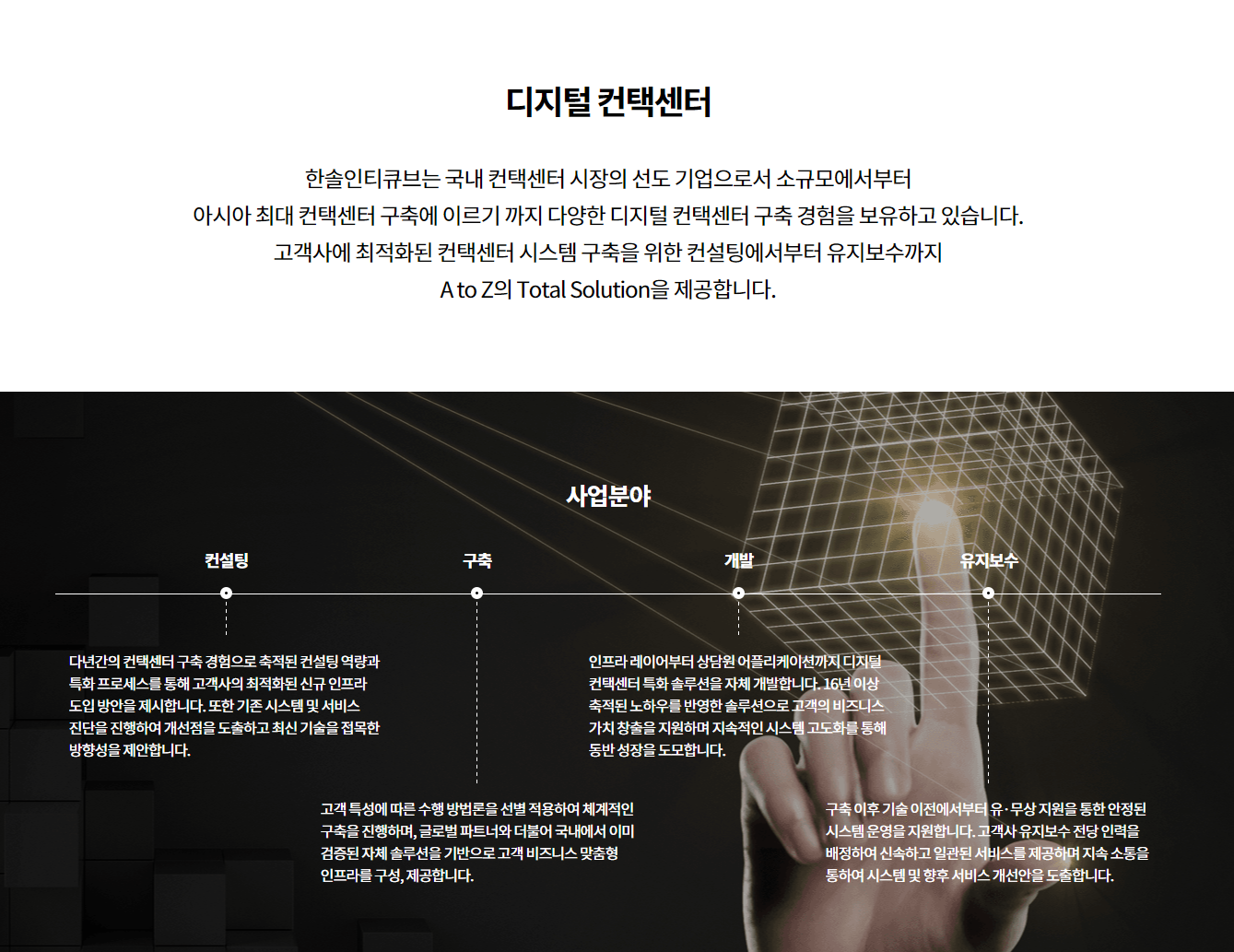 한솔인티큐브는 국내 컨택센터 시장의 선도 기업으로서 소규모에서부터