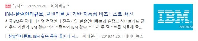 IBM, 한솔인티큐브 콜센터를 AI 기반 지능형 비지니스로 혁신 이라는 기사제목을 볼 수 있습니다.