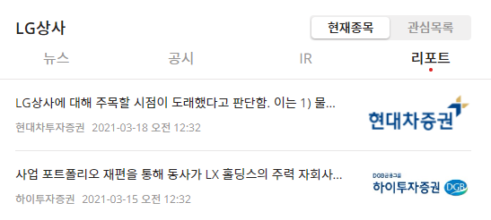 마지막으로 LG상사(001120)의 두개의 리포트를 확인해보겠습니다.