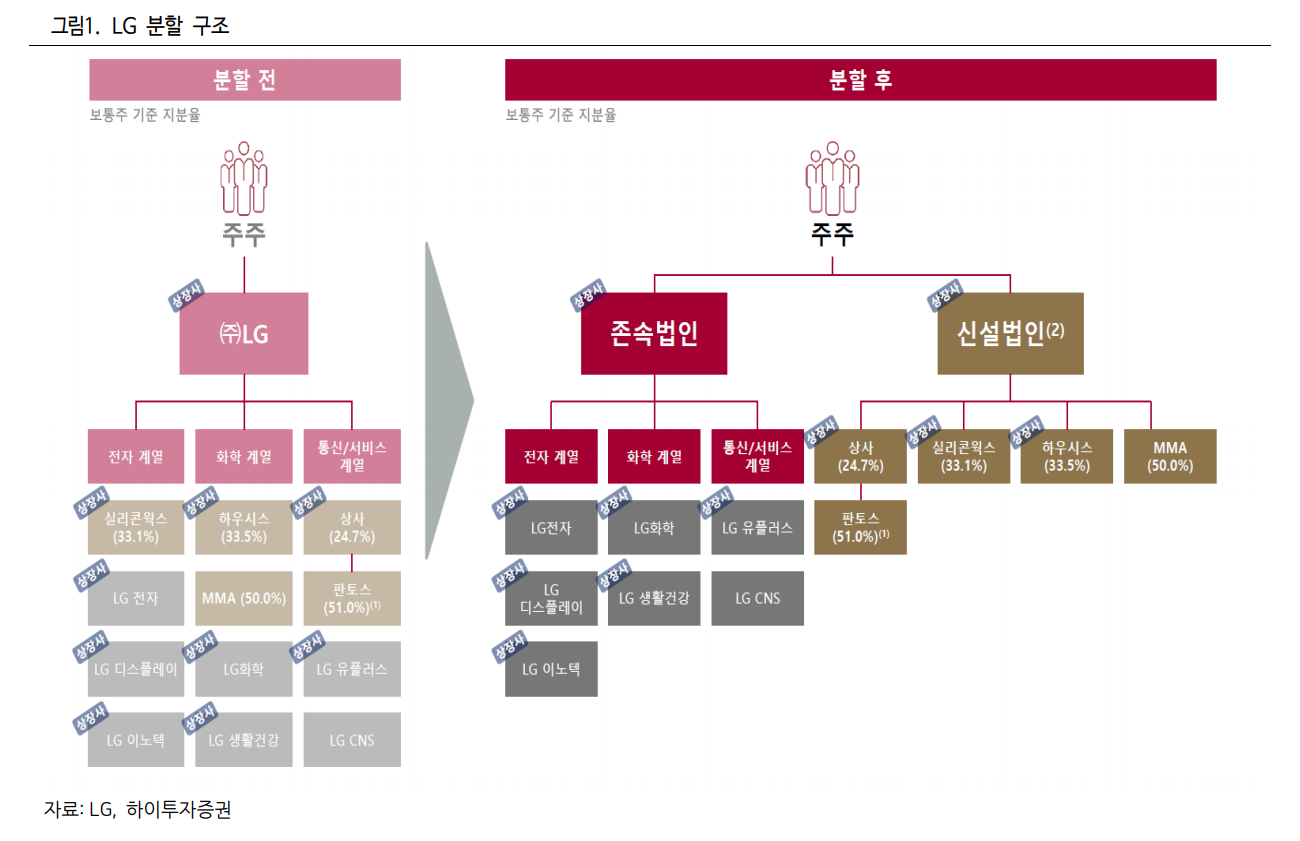 LG 상사(24.7%), 실리콘웍스(33.1%), LG 하우시스(33.5%), LG MMA(50.0%) 등 4개 자회사 출자부문을 인적 분할해 신규 지주회사인 LX 홀딩스를 설립하는 회사분할계획을 결의