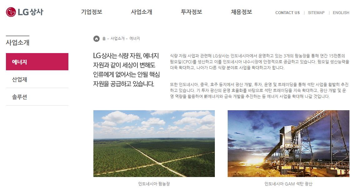 위에서 언급된 내용처럼 LG상사는 인도네시아에서 석탄 광산과 팜농장을 운영하고 있습니다.